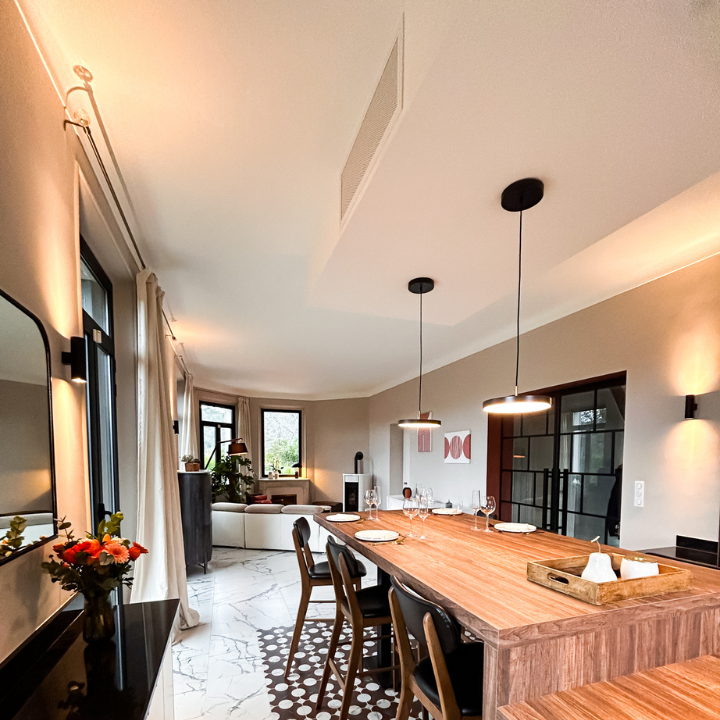 - Traitement thermique avec l’installation d’un système de chauffage/climatisation avec pompe à chaleur air/air, gainable en unité intérieur ainsi que l’ajout d’un bi-split.